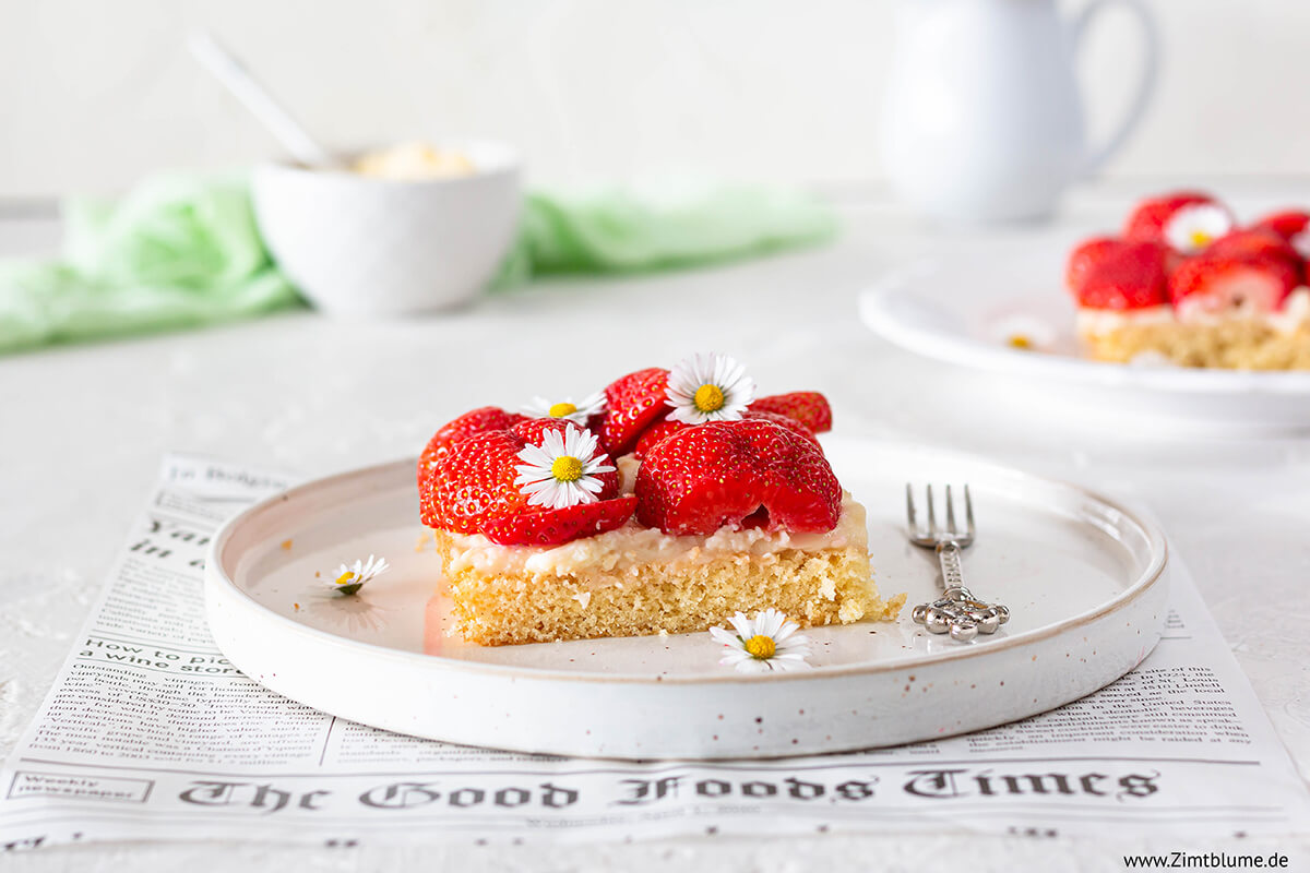 Erdbeerkuchen Mit Pudding Einfacher Kuchen Vom Blech Zimtblume De